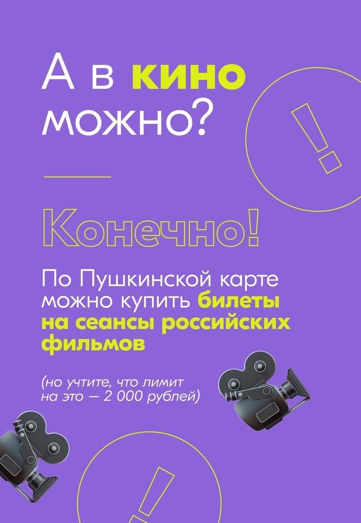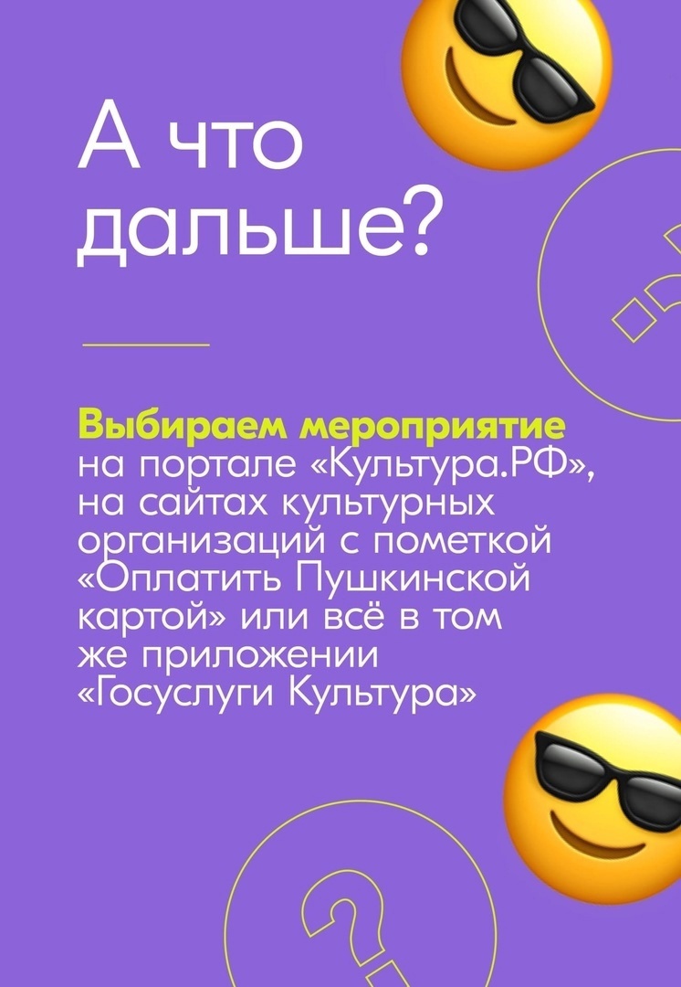 Напоминаем о крутой возможности для тех, кому уже исполнилось 14, но не перевалило за 22: бесплатно сходить в культурно-досуговые учреждения можно по Пушкинской карте.